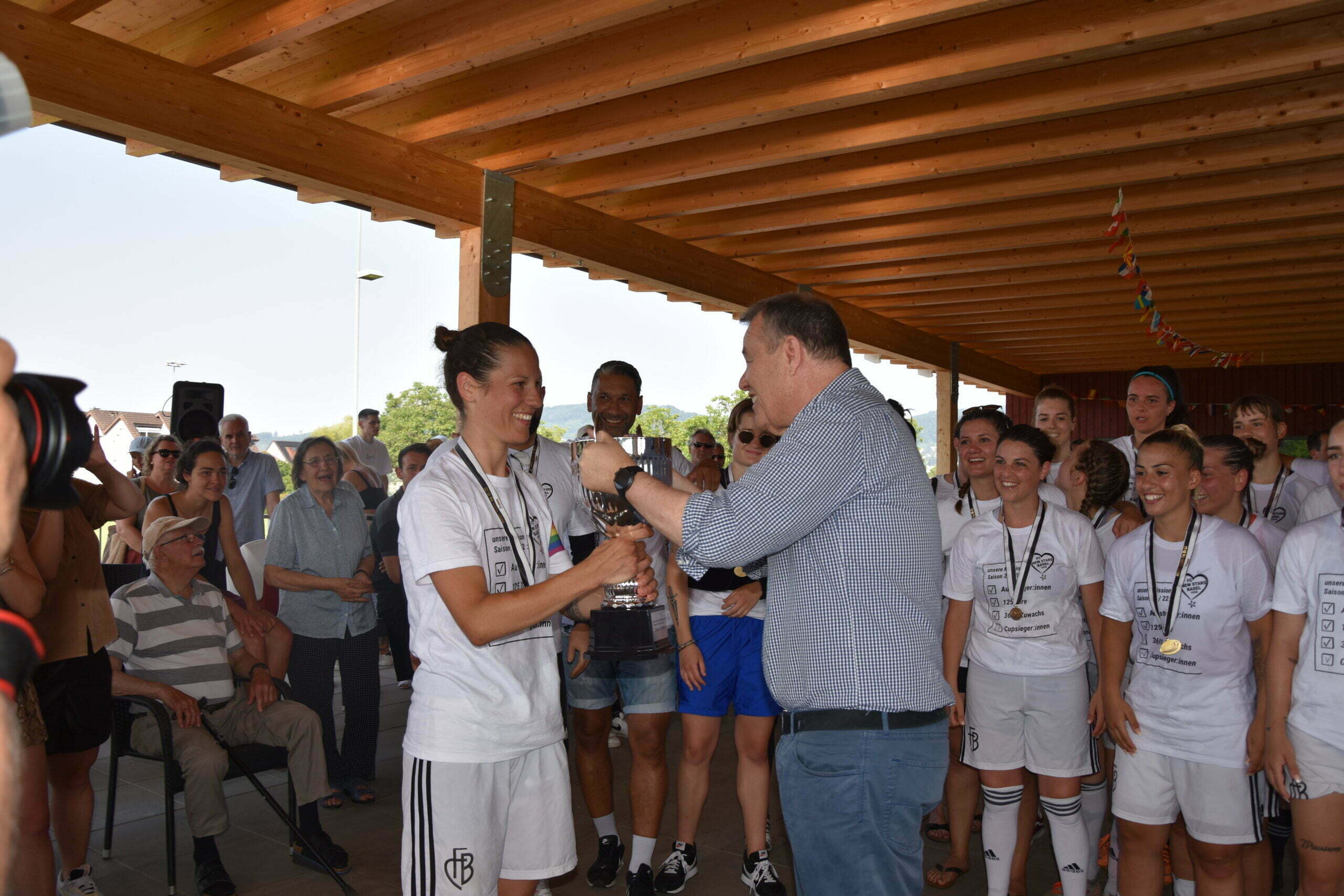 Bei heissen Temperaturen fand am Sonntag der Nepple Frauen Cup Final Tag statt. Neben den FF15 und FF19 Finalspielen trat das erste Frauenteam des FFV Basel im Final der Aktiven gegen den FFC Therwil (2. Liga) an. Das Spiel war aufgrund der Hitze für beide Teams eine Herausforderung, doch nach 90 Minuten konnten sich unsere Frauen über einen verdienten Sieg freuen. Der FFC Therwil ging nach 30 Minuten 0:1 in Führung, doch nur 6 Minuten später konnte der FFV Basel dank einem Treffer von Seline Röthlisberger den Ausgleich erzielen. Nach einer ausgeglichenen und umkämpften ersten Halbzeit gingen beide Teams in die verdiente Pause. In der zweiten Halbzeit konnten unsere Frauen nochmals aufdrehen und erarbeiteten einige gute Chancen. Vier weitere Tore trugen zum Endresultat von 5:1 bei, bevor der Schiedsrichter die Partie abpfiff (Probst, Di Bella, Probst, Verges). Wir gratulieren unserem ersten Frauenteam zum gewonnen Cup und dem Double!